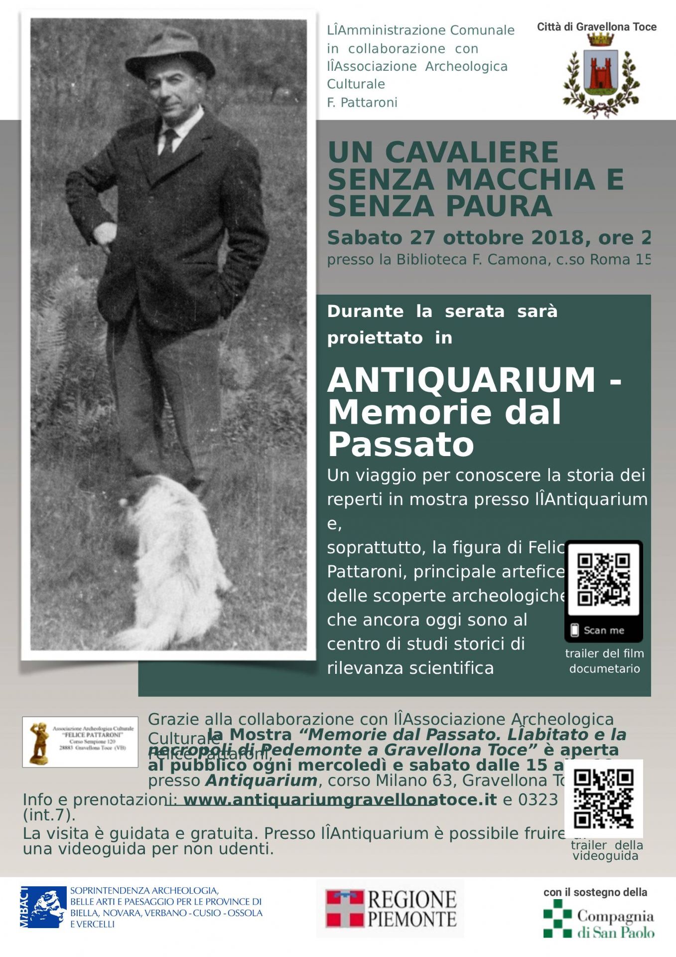 Nell’ambito della rassegna “Ottobre culturale gravellonese”, il 27 ottobre 2018 alle ore 21:00 presso la Biblioteca civica F. Camona in corso Roma 15 a Gravellona Toce verrà proiettata la prima visione del film documentario “Antiquarium: memorie dal passato”, regia di Giovanni Giordano, soggetto Giovanni Giordano e Giorgio Megna.